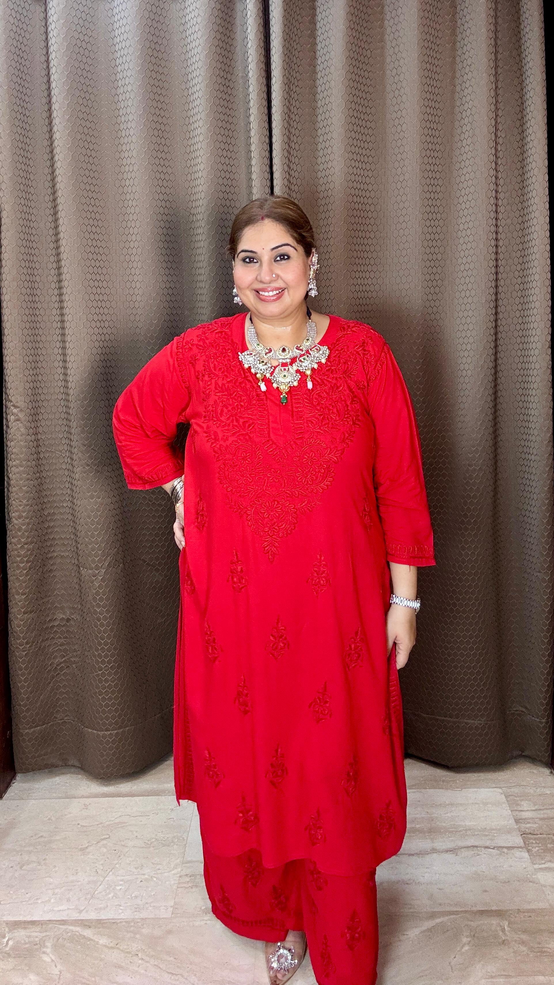 Step into timeless elegance with our Handcrafted Chikankari Kurta & Palazzo Sets, specially designed in plus sizes (48, 50, 52, 54, 56) to celebrate every curve with grace.