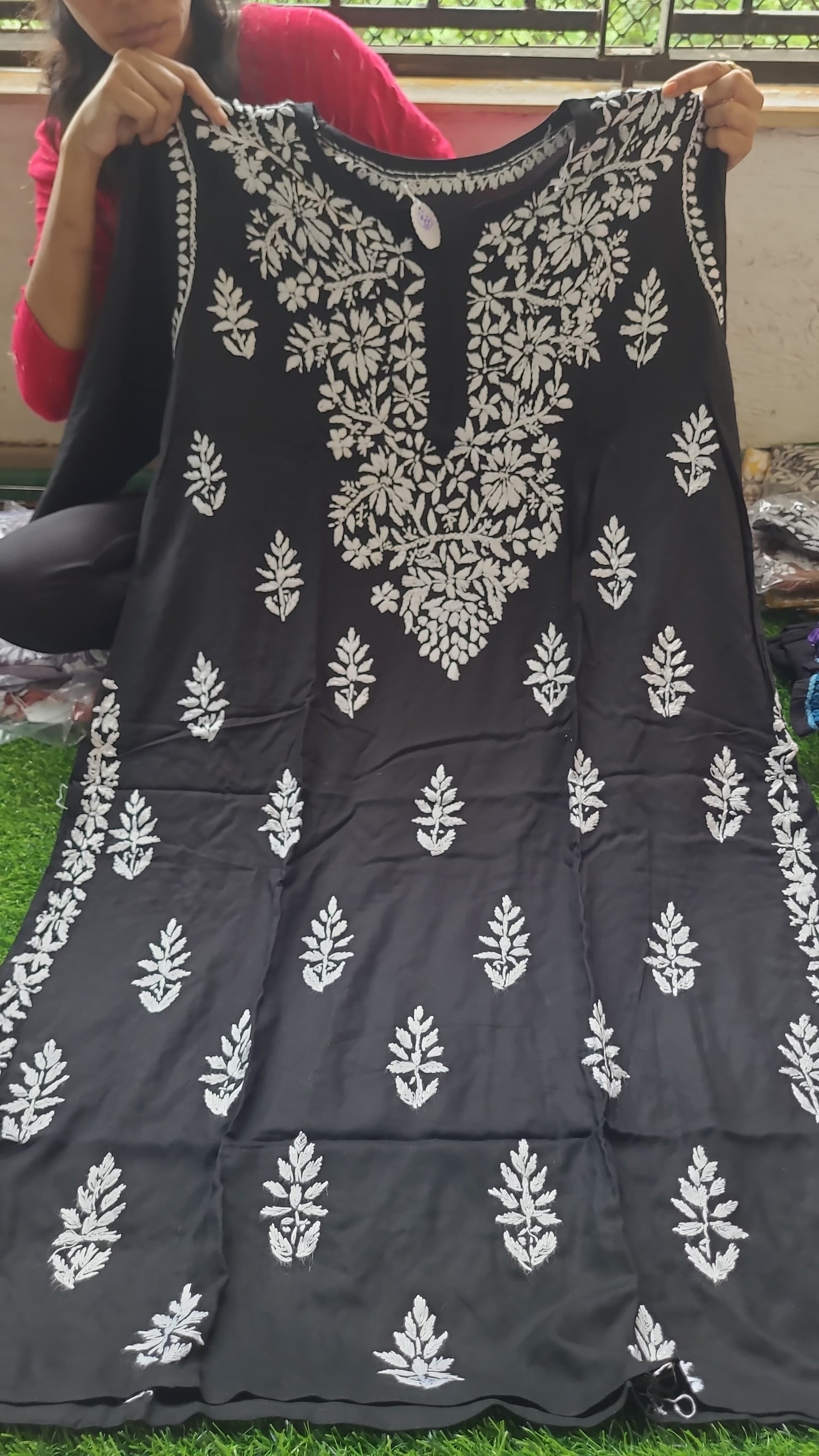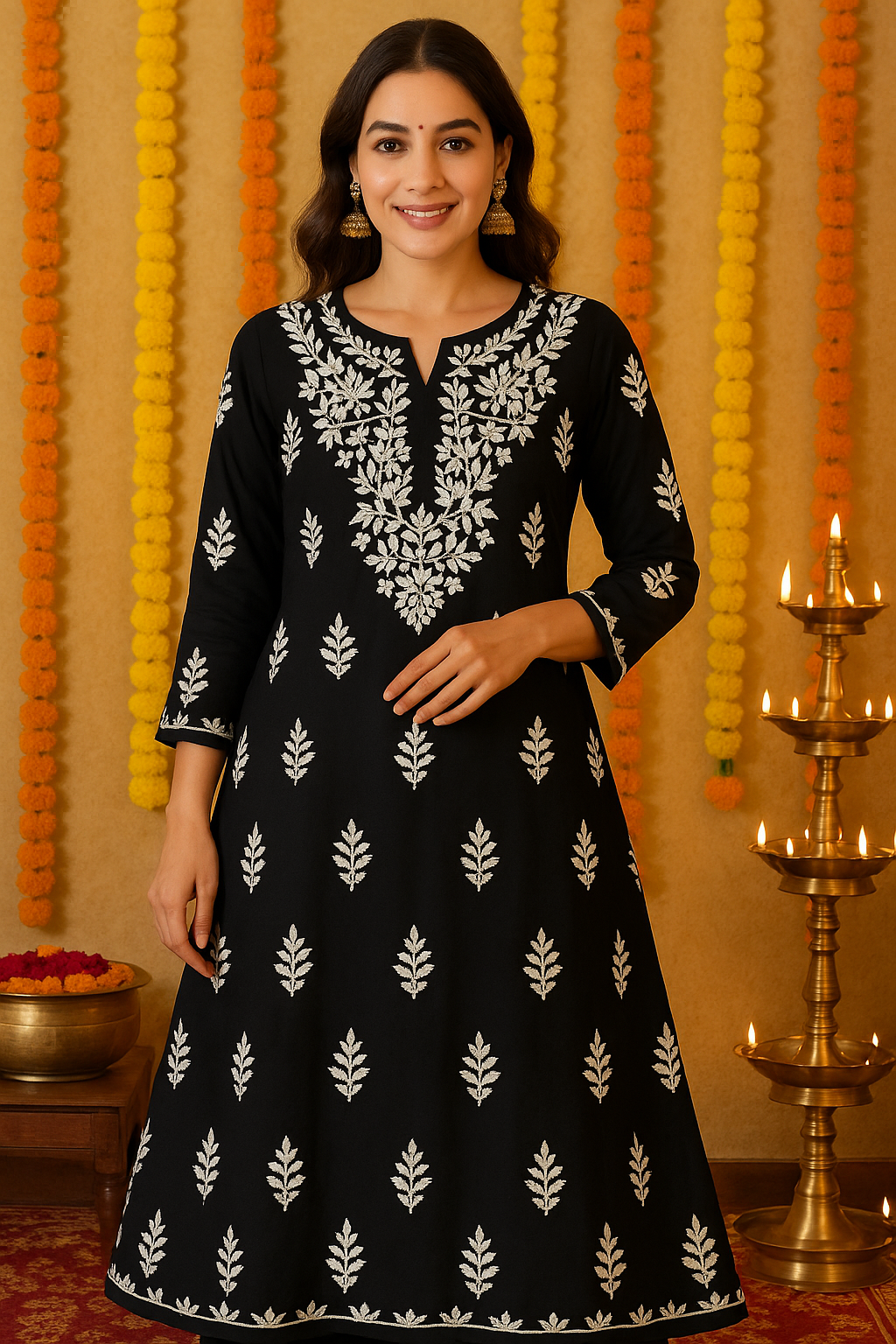 Midnight Elegance – Handcrafted Black Chikankari Kurti (48” Length)
